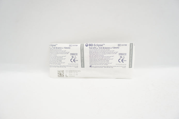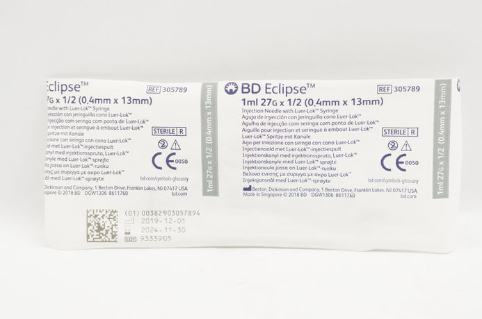 BD 305789 Eclipse Injection Needle with Luer-Lok Syringe 1ml 27G x 1/2in