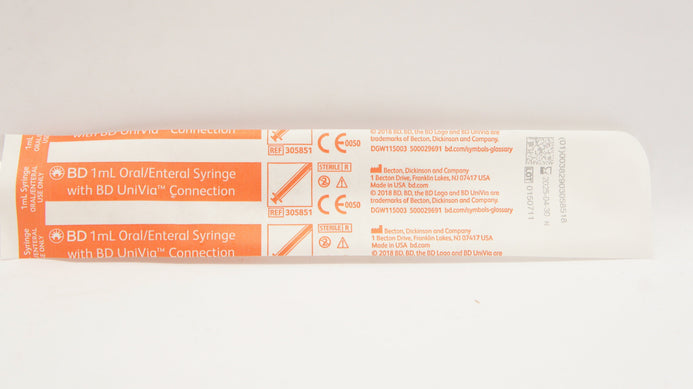 - BD 305851 Oral/Enteral Syringe W/BD UniVia Connection 1mL - Case of 200