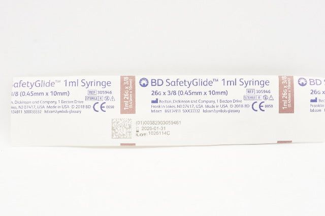 - BD 305946 Safety Glide 1ml, 26G x 3/8inch