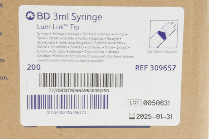 - BD 309657 Luer-Lok Tip Syringe 3ml - Case of 200