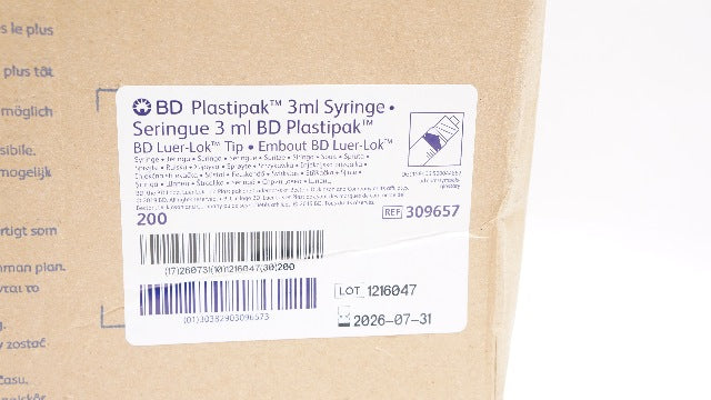 - BD 309657 Plastipak 3ml Syringe Luer-Lok Tip - Box of 200
