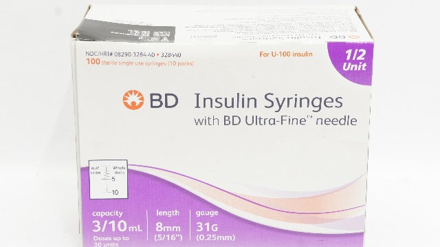 - BD 328440 Insulin Syringes W/Ultra-Fine Ndle 1/2Unit 5/16inch x 31G - Box of 100
