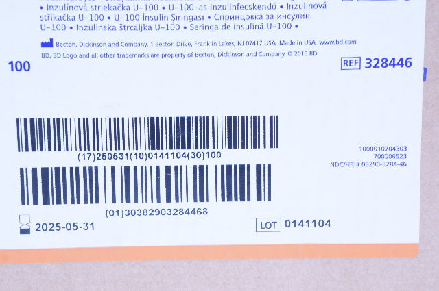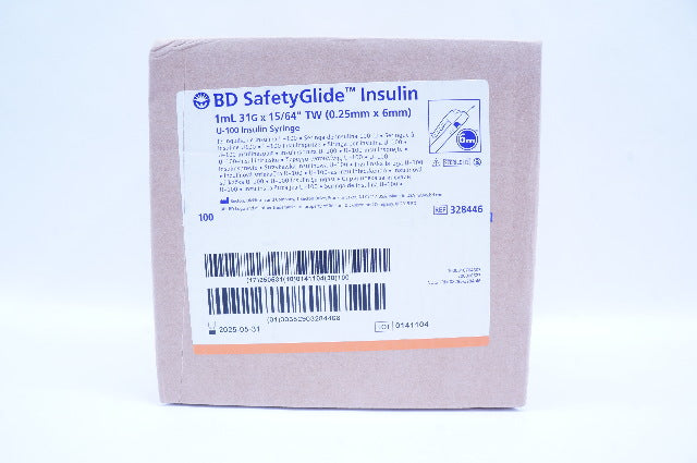 BD 328446 SafetyGlide U-100 Insulin Syringe 1 mL 31G x 15/64inch - Box of 100