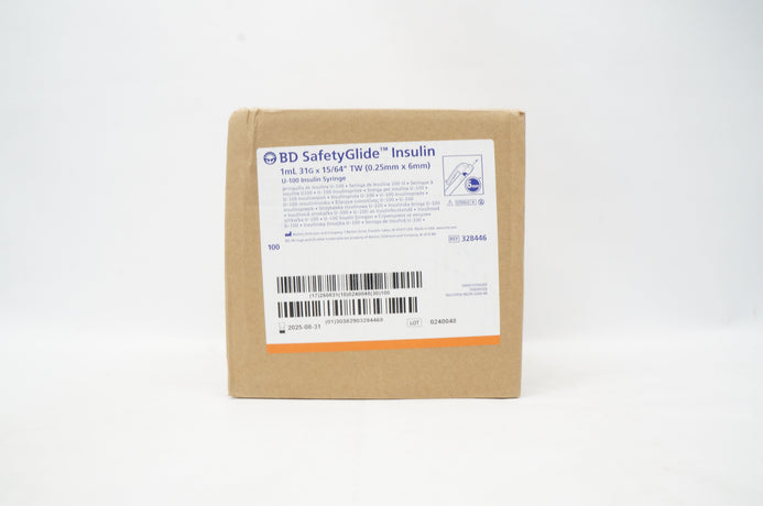 BD 328446 SafetyGlide U-100 Insulin Syringe 1 mL 31G x 15/64inch - Case of 100