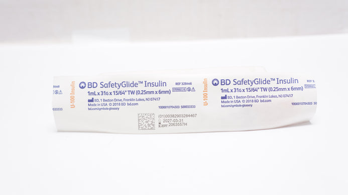 BD 328446 SafetyGlide U-100 Insulin Syringe 1 mL 31G x 15/64inch TW