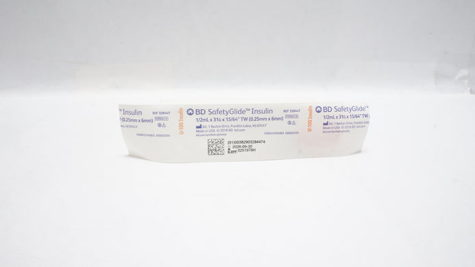 BD 328447 SafetyGlide U-100 Insulin Syringe 1/2mL x 31G x 15/64inch TW