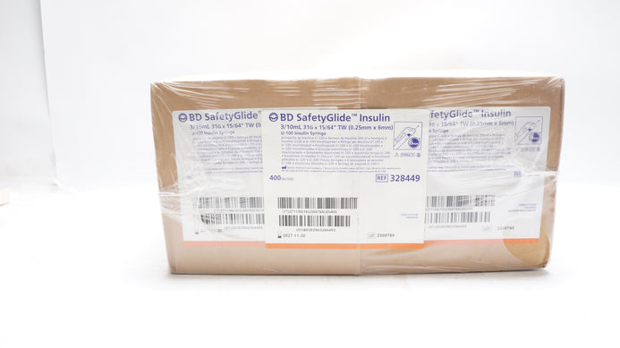 BD 328449 SafetyGlide U-100 Insulin Syringe 3/10ml 31G x 15/64in TW - Box of 400