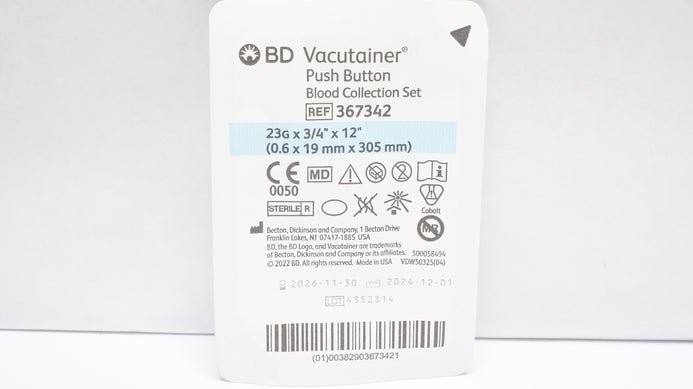 - BD 367342 Vacutainer Push Button Blood Collection Set 23G x 3/4inch x 12inch