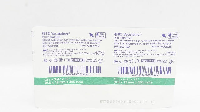 - BD 367352 Vacutainer Push Button Blood Collection Set 21G x 3/4inch x 12inch