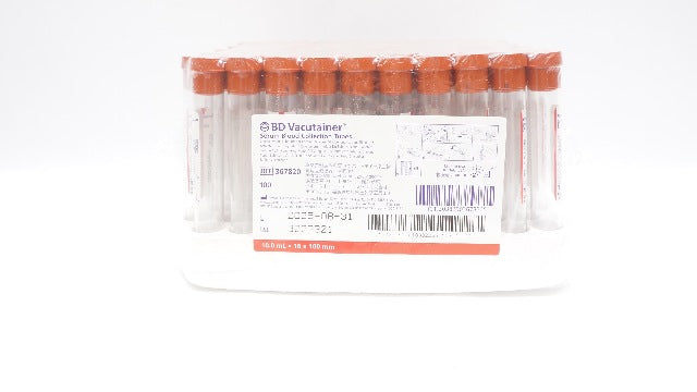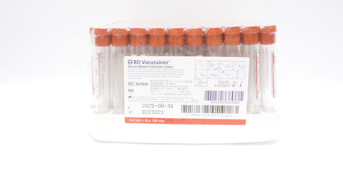 - BD 367820 Vacutainer Serum Blood Collection Tubes 10.0mL 16 x 100mm -Pack of 100