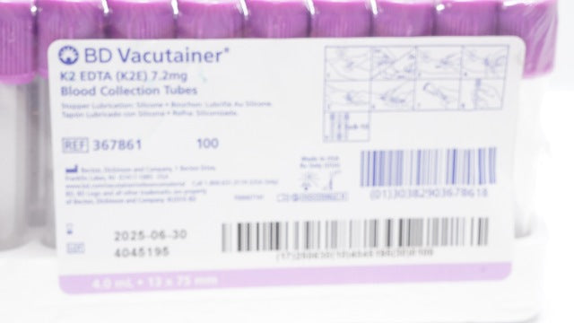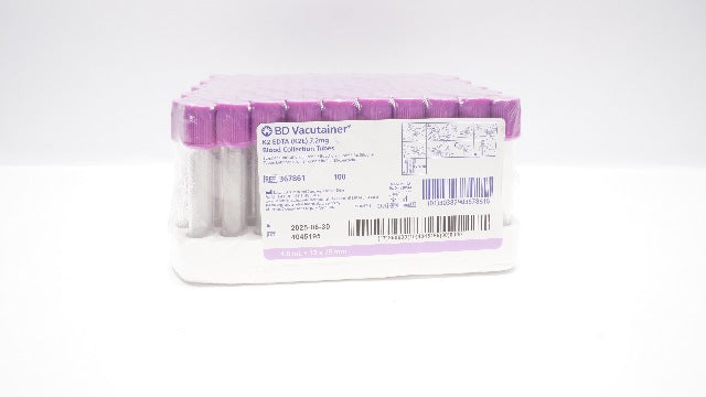 - BD 367861 Vacutainer K2 EDTA 7.2mg Blood Collection Tubes 13 x 75mm- Pack of 100