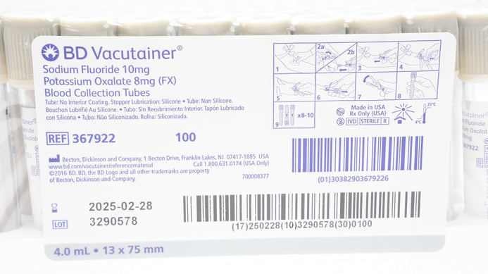 - BD 367922 Vacutainer Blood Collection Tubes 4.0mL 13 x 75mm - Pack of 100
