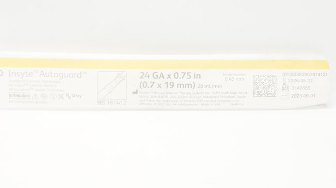 - BD 381412 Insyte Autoguard Shielded I.V. Cath. 24Ga x 0.75inch, 20mL/min