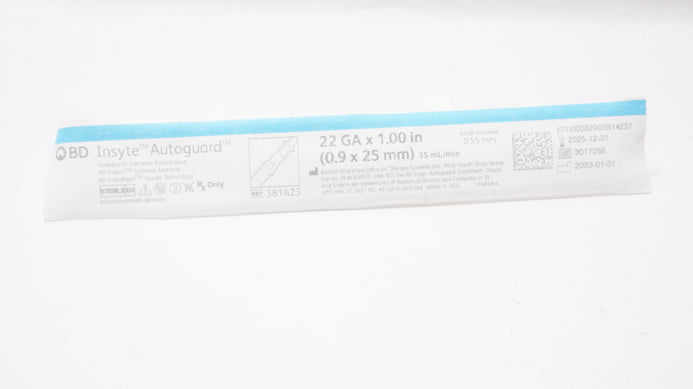 - BD 381423 Insyte Autoguard Shielded IV Cath. 22Ga x 1.00inch, 35mL/min