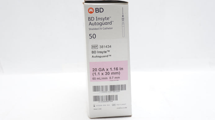 BD 381434 Insyte Autoguard IV Cath. 20Ga x 1.16inch 60mL - Box of 50