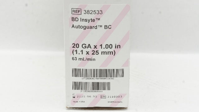 - BD 382533 Insyte Autoguard BC Shielded IV Cath. 20Ga x 1.00In 63ml/min-Box of 31