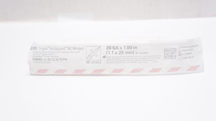- BD 382633 Insyte Autoguard BC Winged Shielded IV Cath. 20GA x 1.00inch 63ml/min