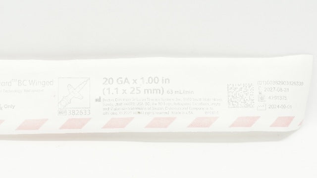 - BD 382633 Insyte Autoguard BC Winged Shielded IV Cath. 20GA x 1.00inch 63ml/min