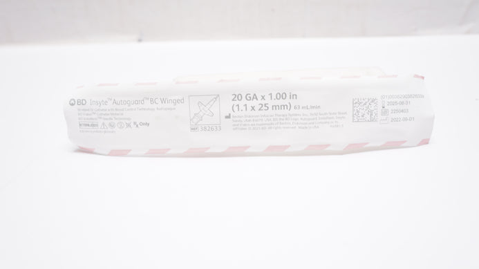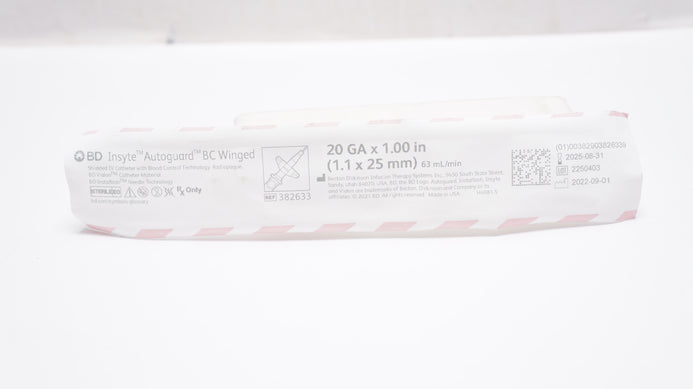 - BD 382633 Insyte Autoguard BC Winged Shielded IV Cath. 20GA x 1.00inch 63ml/min