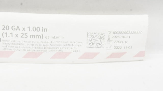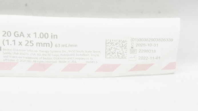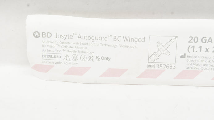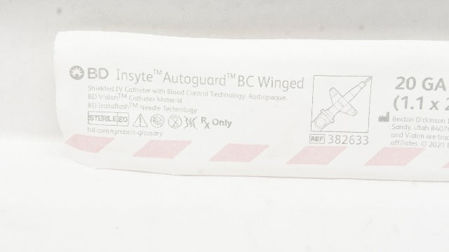 - BD 382633 Insyte Autoguard BC Winged Shielded IV Cath. 20GA x 1.00inch 63mL/min