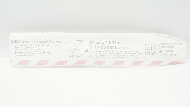 - BD 382633 Insyte Autoguard BC Winged Shielded IV Cath. 20GA x 1.00inch 63ml/min