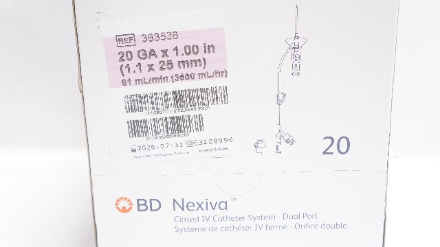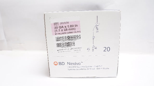 BD 383536 Nexiva Closed IV Cath. System 20Ga x 1.00inch 61mL/min - Box of 20