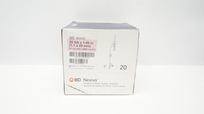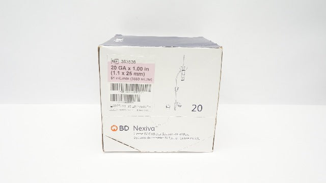 - BD 383536 Nexiva Closed IV Cath. System 20Ga x 1.00inch 61mL/min - Box of 20