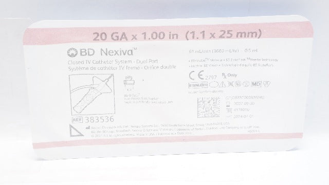 - BD 383536 Nexiva Closed IV Cath. System Dual Port 20 Ga x 1.00inch 61mL/min
