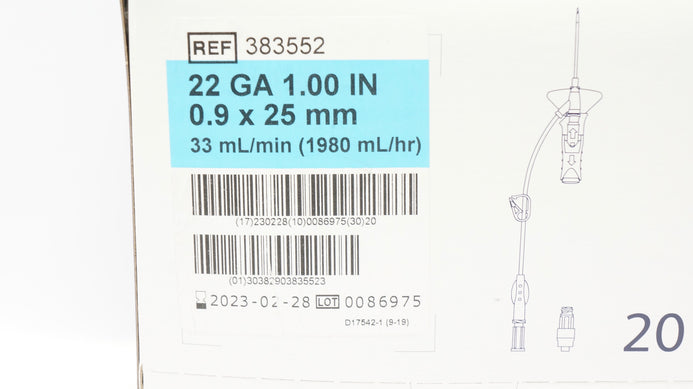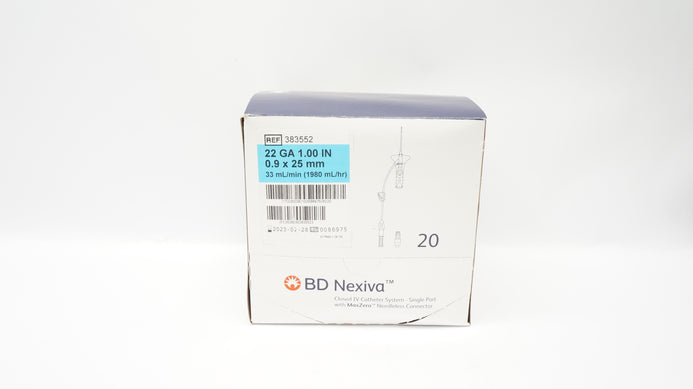 - BD 383552 Nexiva Closed IV Cath. System 22Ga x 1.00inch 33mL/min (x) - Box of 20