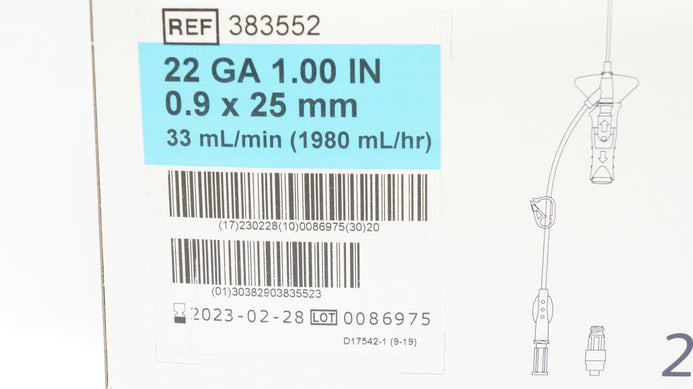 - BD 383552 Nexiva Closed IV Cath. System 22Ga x 1.00inch 33mL/min (x) - Box of 19
