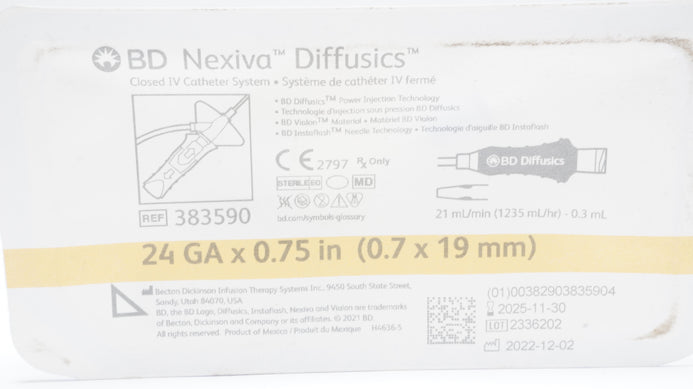 - BD 383590 Nexiva Diffusics Closed IV Cath. System 24GA x 0.75inch