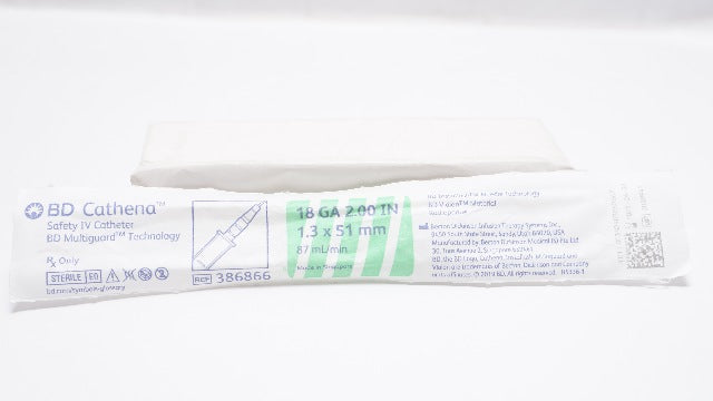 - BD 386866 Cathena Safety IV Cath. BD Multiguard Technology 18GA 2.0In, 87mL/min