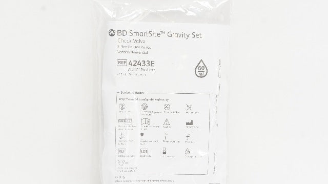- BD 42433E Alaris SmartSite Gravity Set Check Valve 17ml x 104inch 60Drops/ml