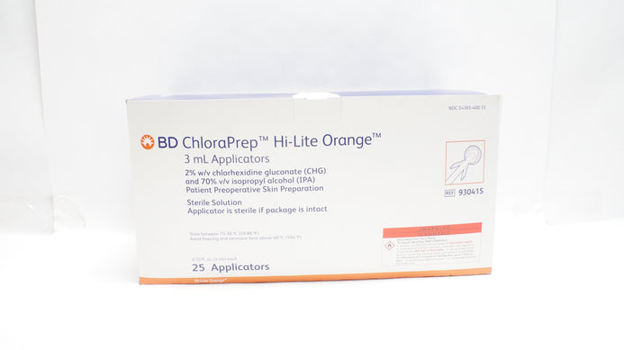 - BD 930415 ChloraPrep Hi-Lite Orange 3mL Applicators - Box of 25