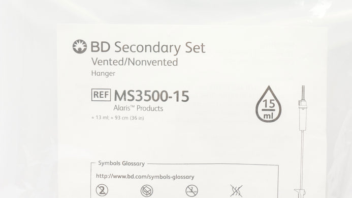 - BD MS3500-15 Secondary Set Vented/Nonvented Hanger 13ml x 36 inch 15Drops/mL