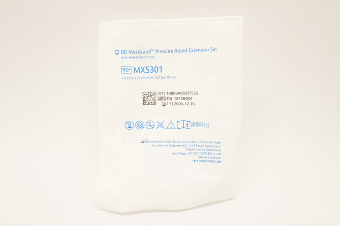 - BD MX5301 MaxGuard Pressure Rated Extenion Set w/Ndleless Y-site 0.8ml x 8inch