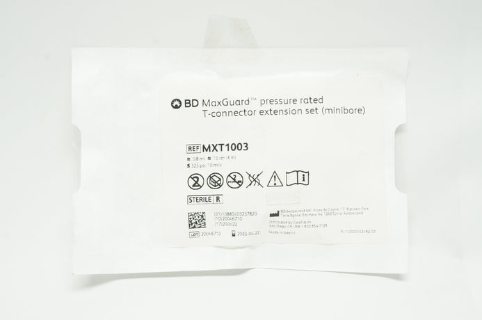- BD MXT1003 MaxGuard Pressure Rated T-Connector Extension Set 0.8ml x 6 inch