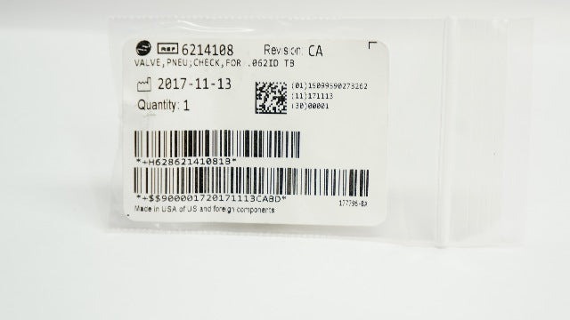 - Beckman 6214108 Valve,Pneu; Check,For. 062ID TB