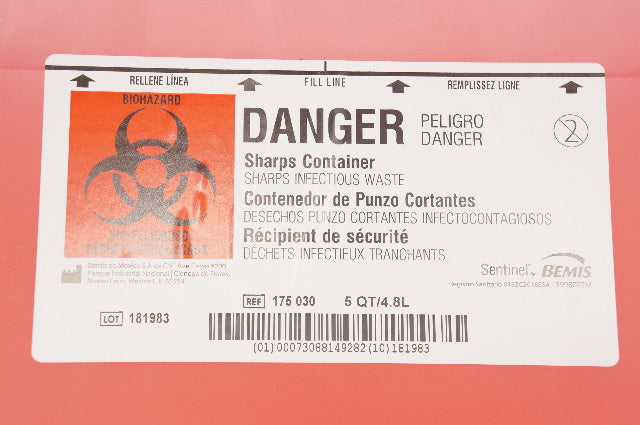 - Bemis 175030 Quart Sharps Container, Translucent Red 4.8L