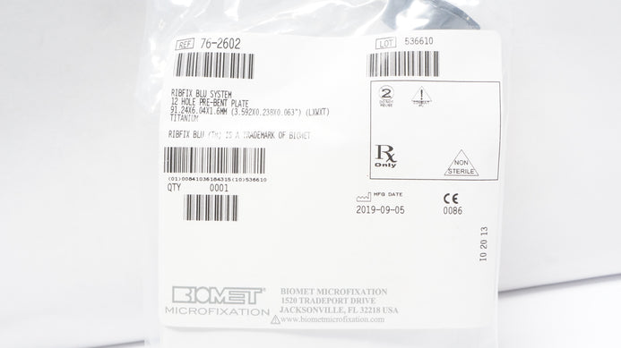 - Biomet 76-2602 Ribfix Blu System 12Hole Pre-Bent Plate