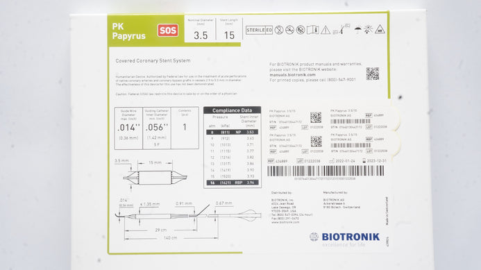 - Biotronik 434889 PK Papyrus SOS Covered Coronary Stnt System 3.5mm x 15mm (x)