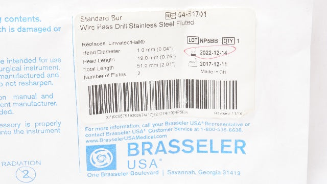 - Brasseler 04-S1701 Standard Bur Wire Pass Drill Stainless Steel 2.01inch (x)