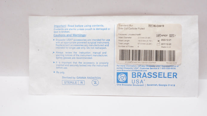 - Brasseler 06-C0619 Standard Bur Side Cut Carbide Fluted 2.24x 0.08 x 0.75inch(x)