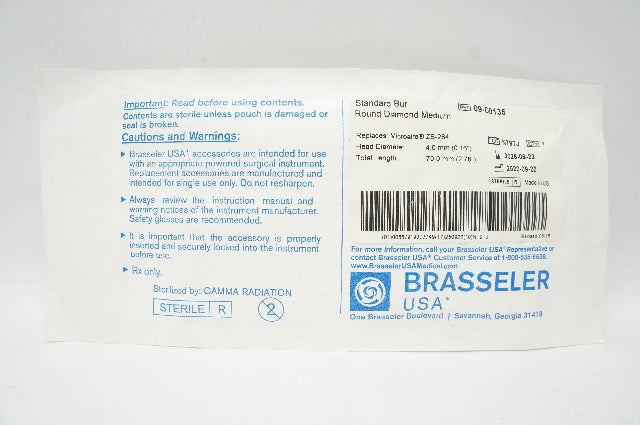 - Brasseler 09-D0135 Round Diamond Bur 4.0 mm x 70.0 mm