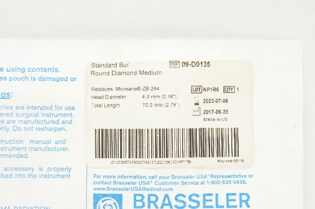 - Brasseler 09-D0135 Round Diamond Bur, Medium 0.16inch x 2.76inch (x)