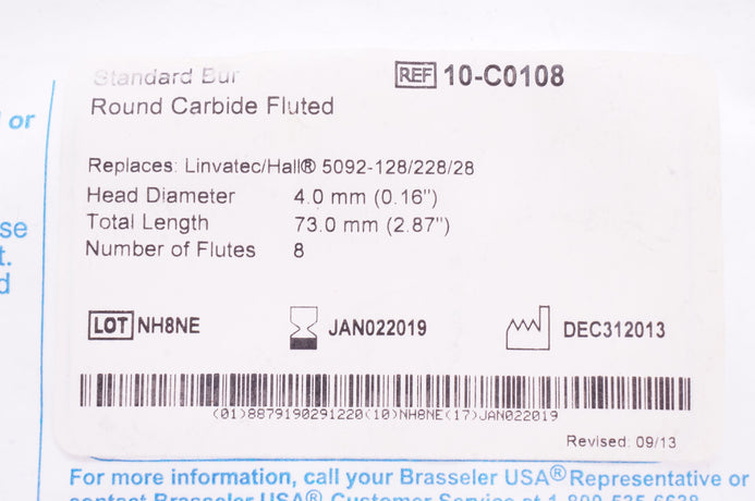- Brasseler 10-C0108 Standard Bur Round Carbide Fluted 0.16 inch x 2.87 inch (x)