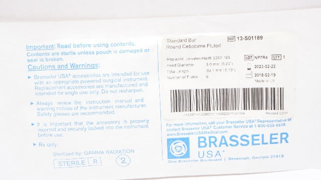 - Brasseler 13-S01189 Standard Bur Round Cebotome Fluted 0.20inch x 1.19inch (x)