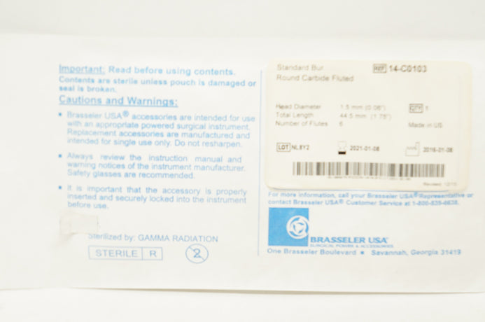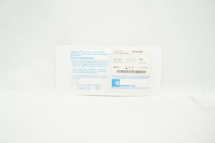 - Brasseler 14-C0103 Standard Bur Round Carbide Fluted 0.06 x 1.75 inch (x)