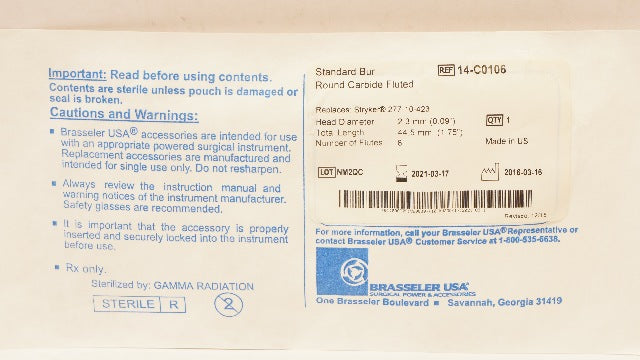 - Brasseler 14-C0106 Stryker Standard Bur Round Carbide Fluted 0.09In x 1.75In(x)