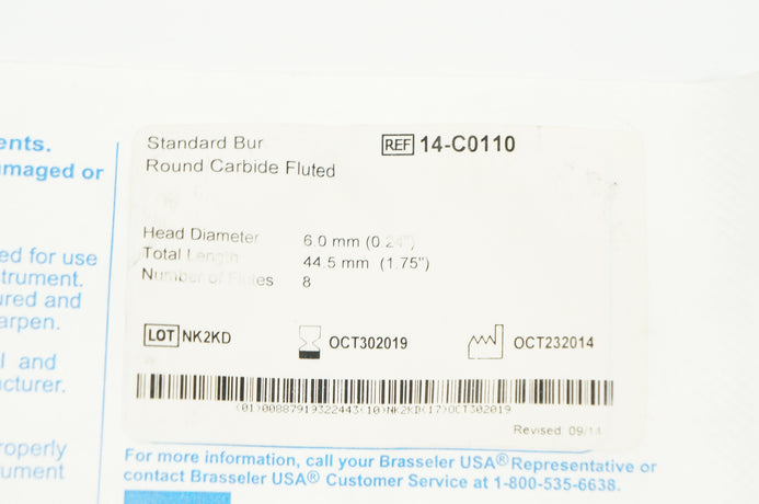 - Brasseler 14-C0110 Standard Bur Round Carbide Fluted (x)